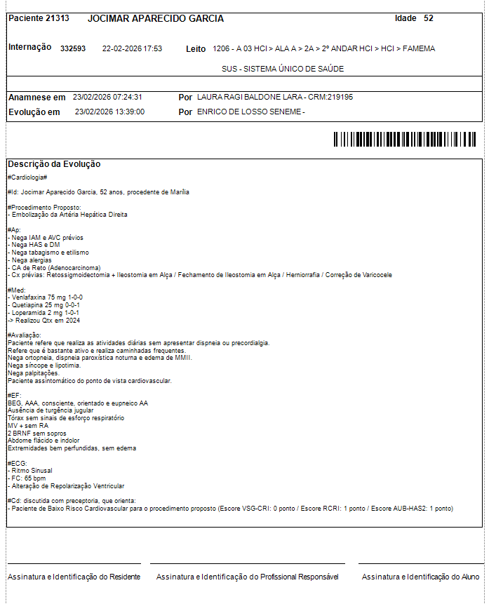 PACIENTE DEU ENTRADA COM QUADRO SUGESTIVO DE OAA EMBOLICA